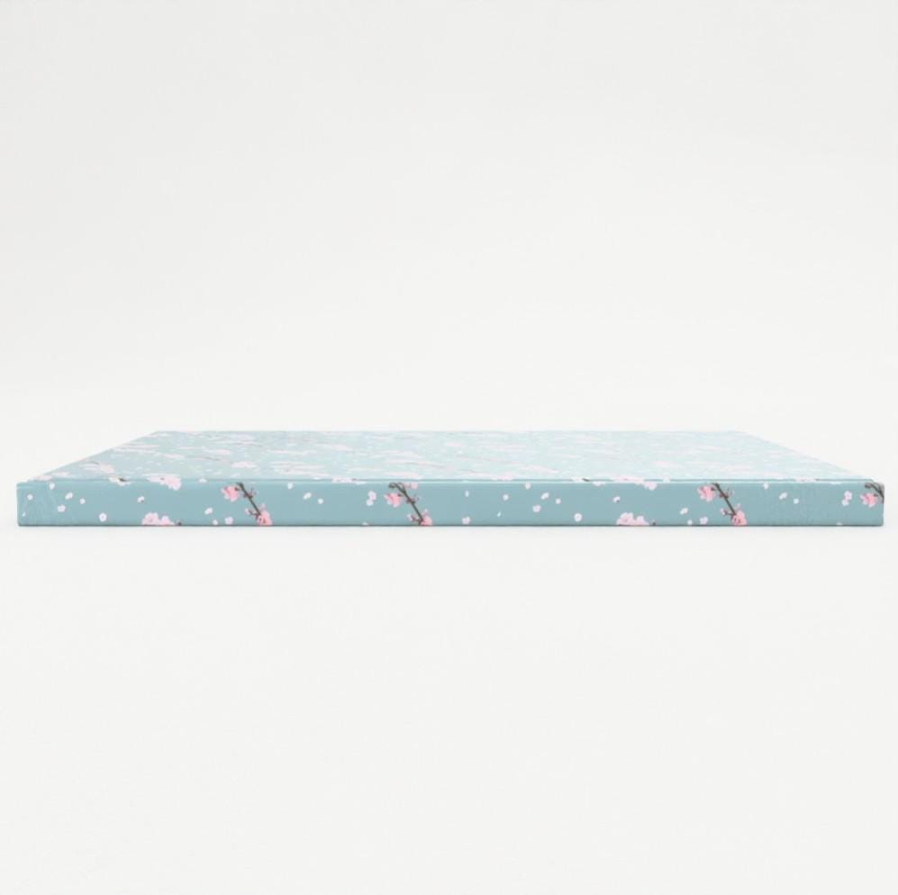 This high quality A5 notebook has a durable laminated hard cover with a pretty design featuring a cherry blossom design on a light blue background. It has 128 pages made with 90gsm white paper, each of which is ruled with lines making it perfect for making notes, writing lists, or using as a journal. It is A5 size, measuring 14.8 by 21cm, and has been designed and printed in the UK using high quality sustainably sourced paper.