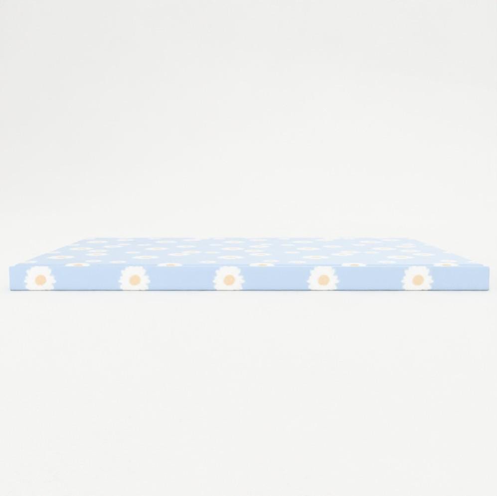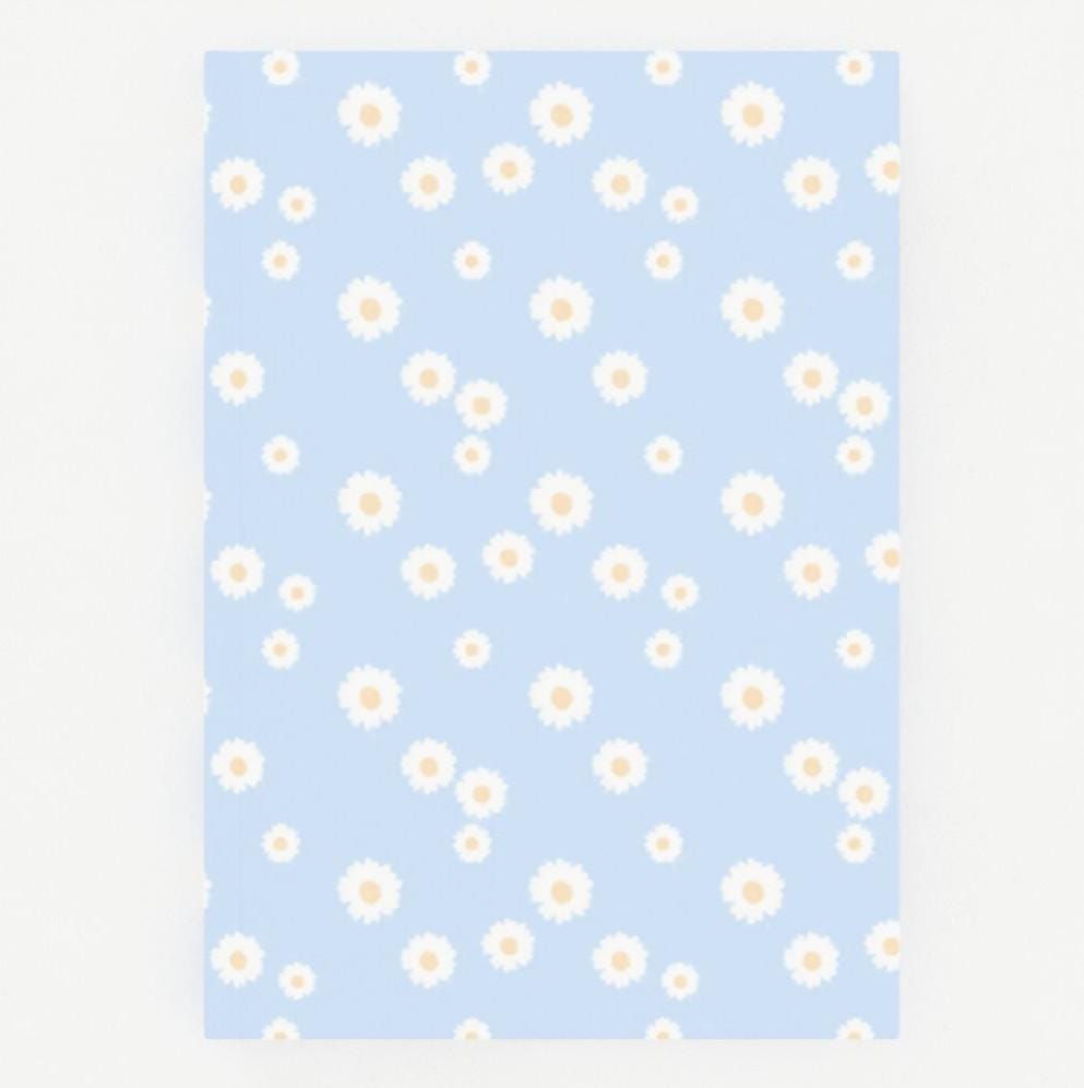 This high quality A5 notebook has a durable laminated hard cover with a pretty design featuring daisies on a light blue background. It has 128 pages made with 90gsm white paper, each of which is ruled with lines making it perfect for making notes, writing lists, or using as a journal. It is A5 size, measuring 14.8 by 21cm, and has been designed and printed in the UK using high quality sustainably sourced paper.