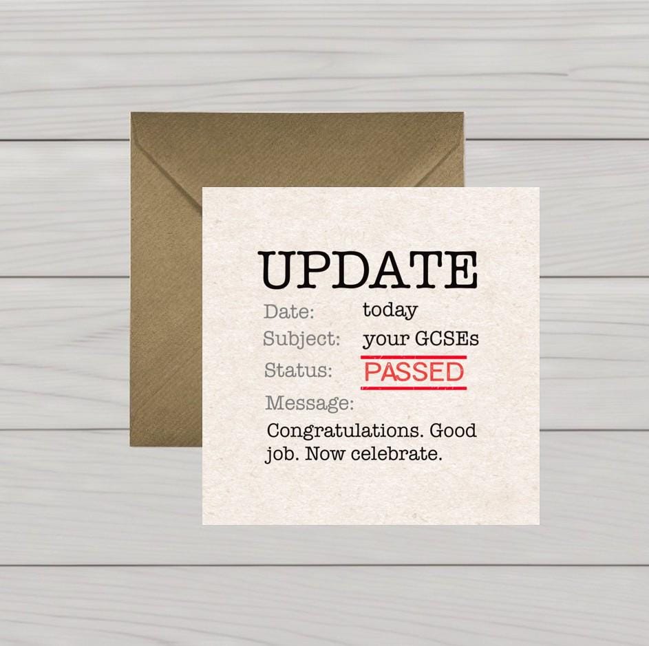 This classic Congratulations card is perfect for sending to someone who has just got their GCSE exam results! It is an original Blue Trousers design, which is printed in the UK on high quality, sustainably sourced 324gsm card. This congratulations card measures 5.5 by 5.5 inches (14cm by 14cm), is supplied with a brown recycled kraft paper envelope, and comes safely packaged in a biodegradable plastic wrapper. This card is blank on the inside, for you to write your own message.