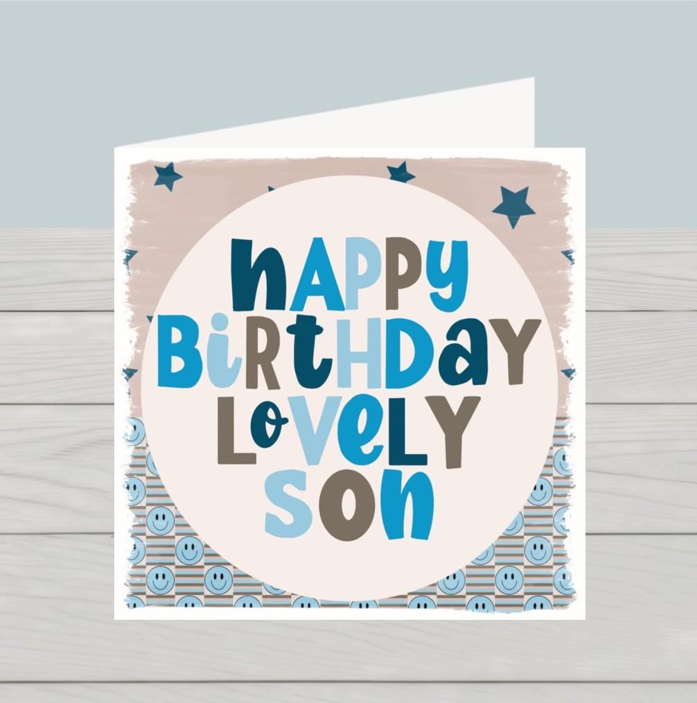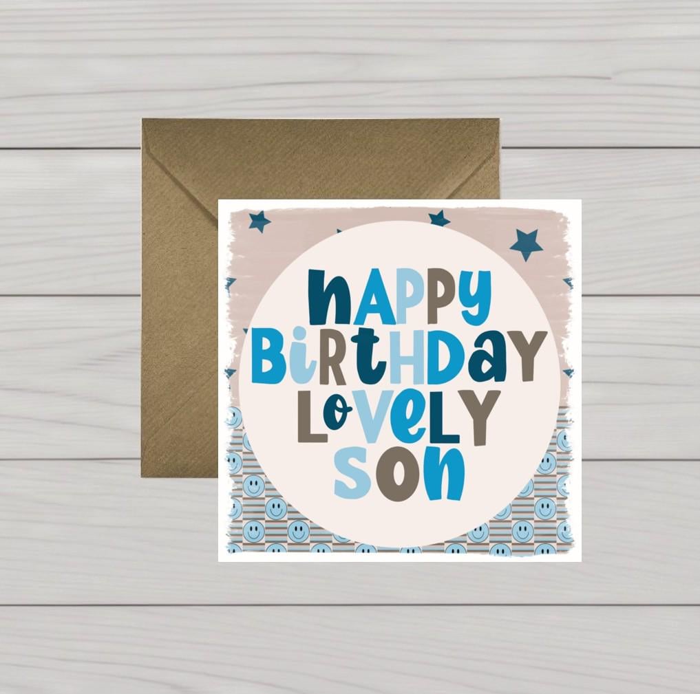 This Birthday card design with hearts is perfect for celebrating your son's birthday. It is an original Blue Trousers design, which is printed in the UK on high quality, sustainably sourced 324gsm card. This birthday card measures 5.5 by 5.5 inches (14cm by 14cm), is supplied with a brown recycled kraft paper envelope, and comes safely packaged in a biodegradable plastic wrapper. This card is blank on the inside, for you to write your own message.