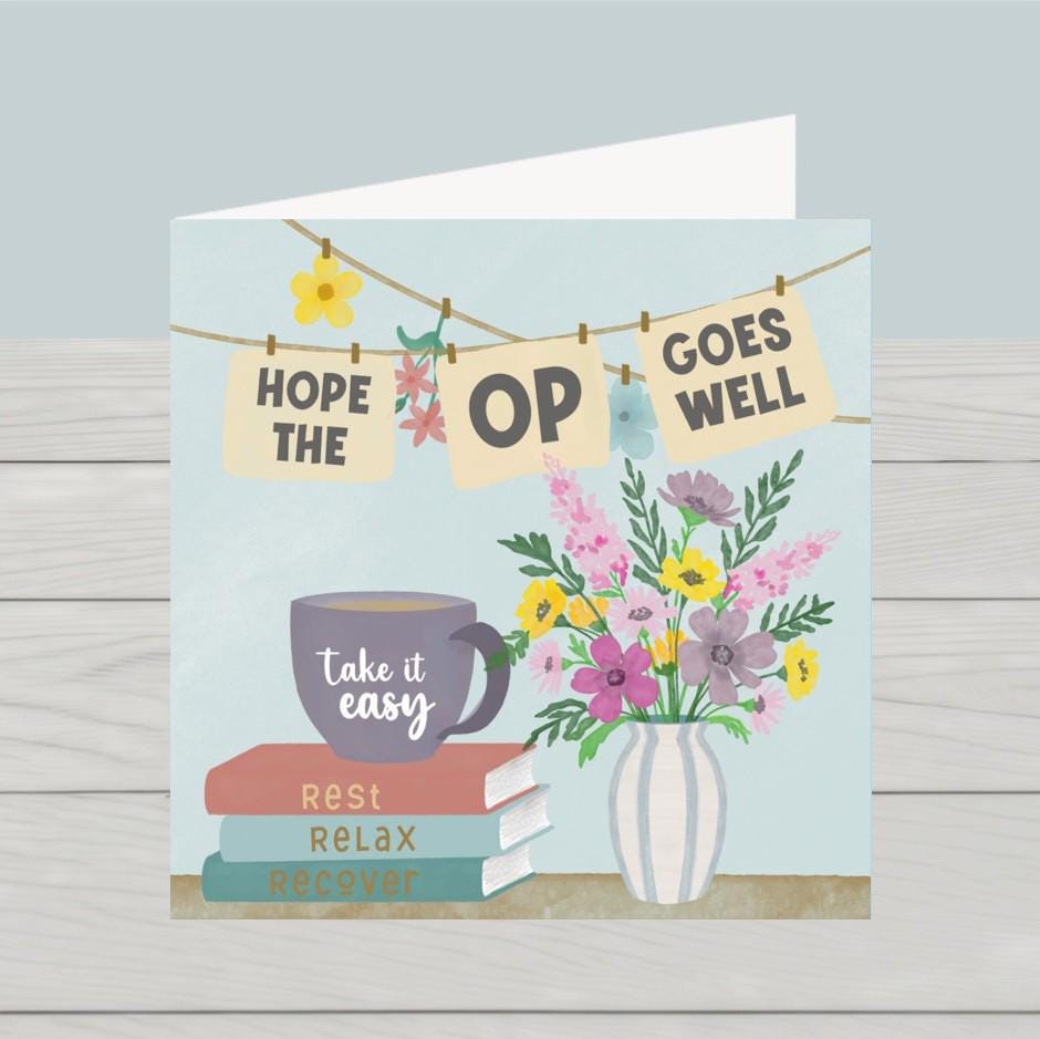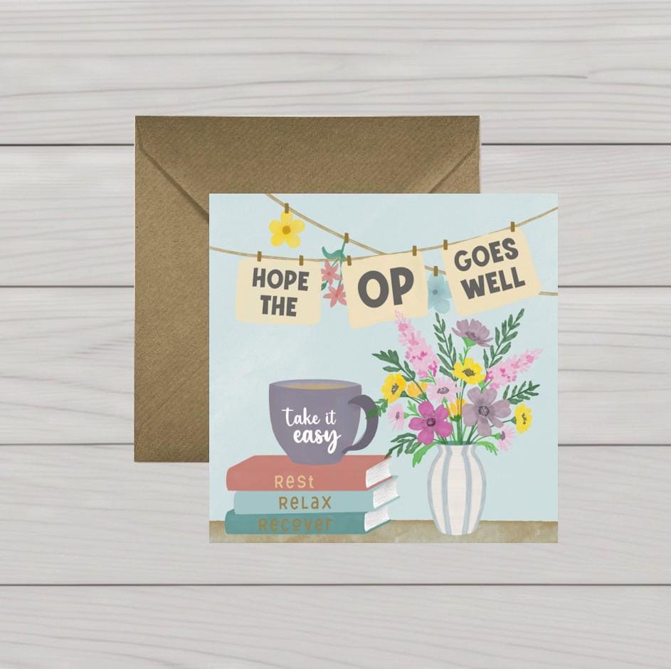 This classic get well soon card is perfect for sending your good wishes to a loved one or good friend on their forthcoming operation. It is an original Blue Trousers design, which is printed in the UK on high quality, sustainably sourced 324gsm card. This card measures 5.5 by 5.5 inches (14cm by 14cm), is supplied with a brown recycled kraft paper envelope, and comes safely packaged in a biodegradable plastic wrapper. This card is blank on the inside, for you to write your own message.