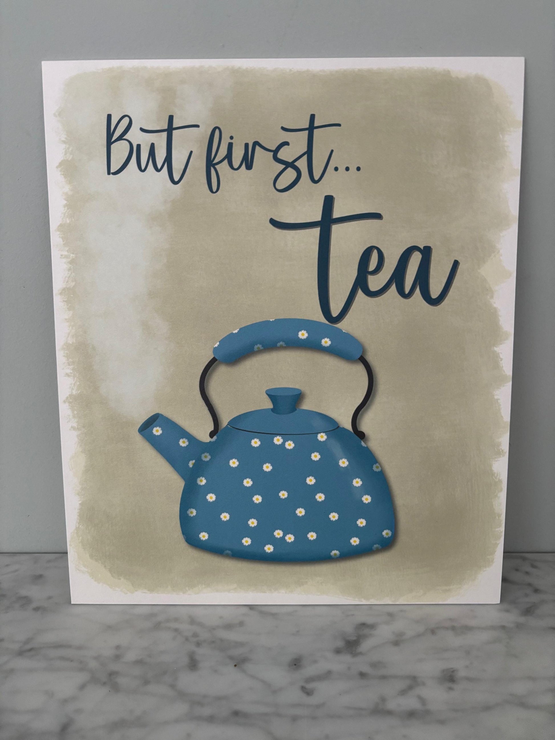 Kitchen wall art #5 But first tea, Kitchen unframed picture, kitchen printed gallery board, picture for kitchen kettle, Kitchen print kettle