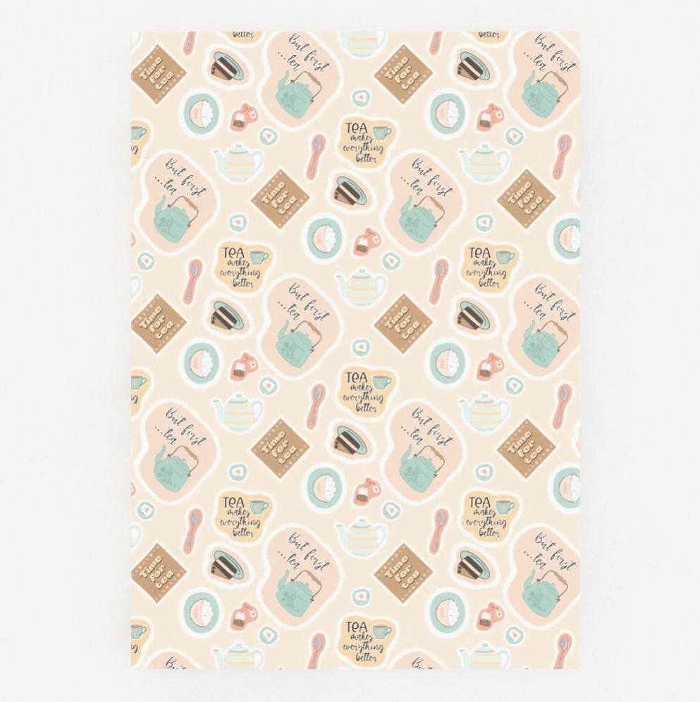 This high quality A5 notebook has a durable laminated hard cover with a classic tea themed design that is perfect for tea lovers! It has 128 pages made with 90gsm white paper, each of which is ruled with lines making it perfect for making notes, writing lists, or using as a journal. It is A5 size, measuring 14.8 by 21cm, and has been designed and printed in the UK using high quality sustainably sourced paper.