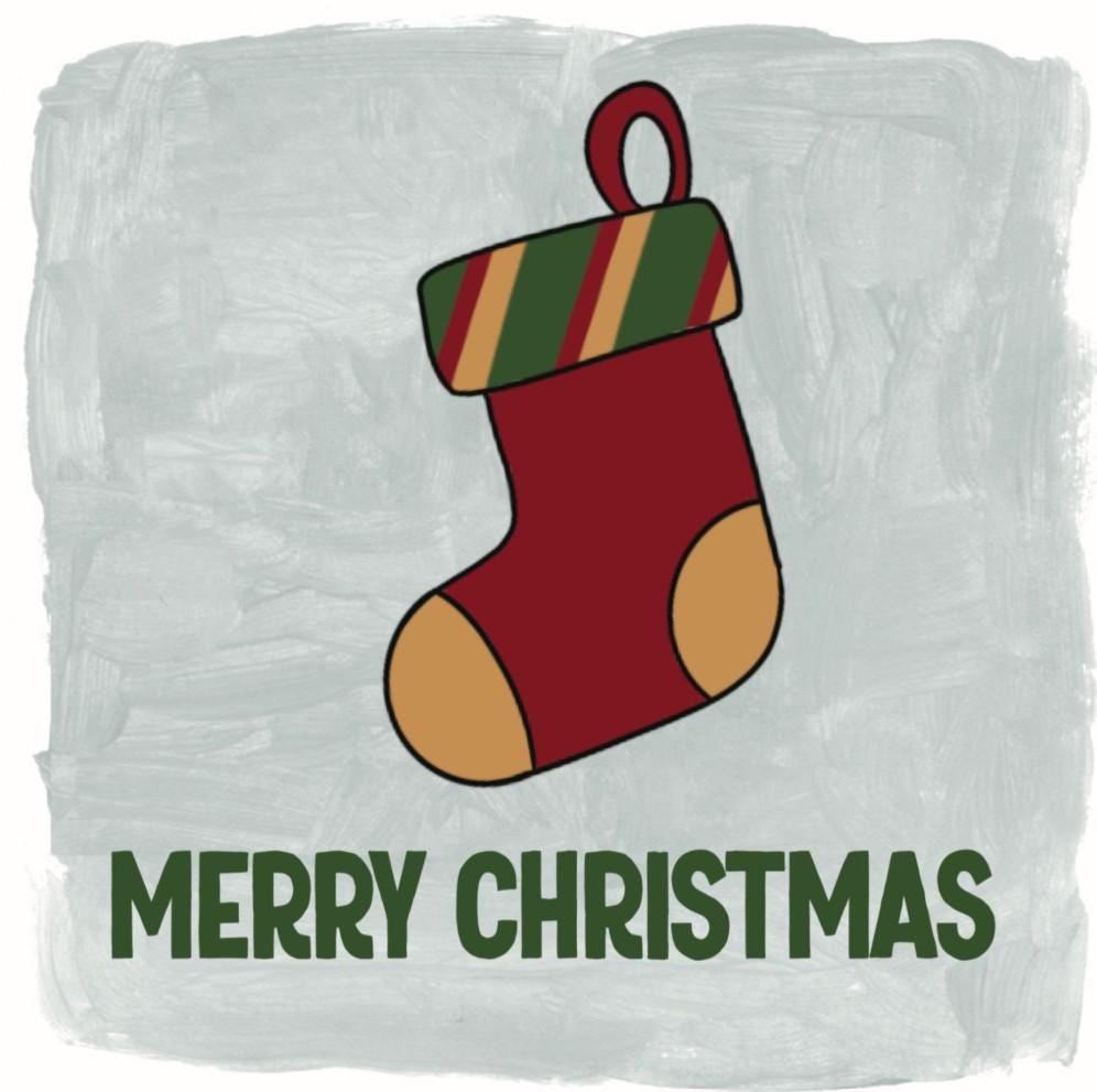 This pack contains ten classic Christmas cards with stockings waiting to be filled with presents that are perfect for family, friends and work colleagues! It is an original Blue Trousers design, which is printed in the UK on high quality, sustainably sourced 324gsm card. Each card measures 5.5 by 5.5 inches (14cm by 14cm), and the message inside simply says "Merry Christmas". Each pack contains ten cards together with ten brown recycled kraft paper envelopes.