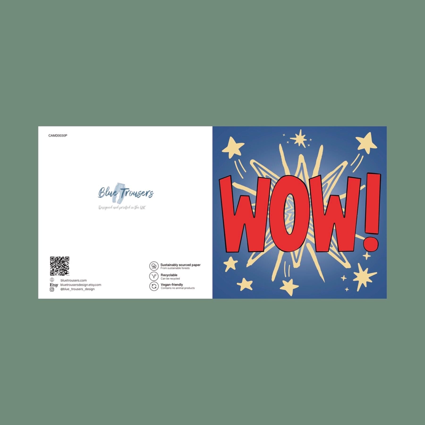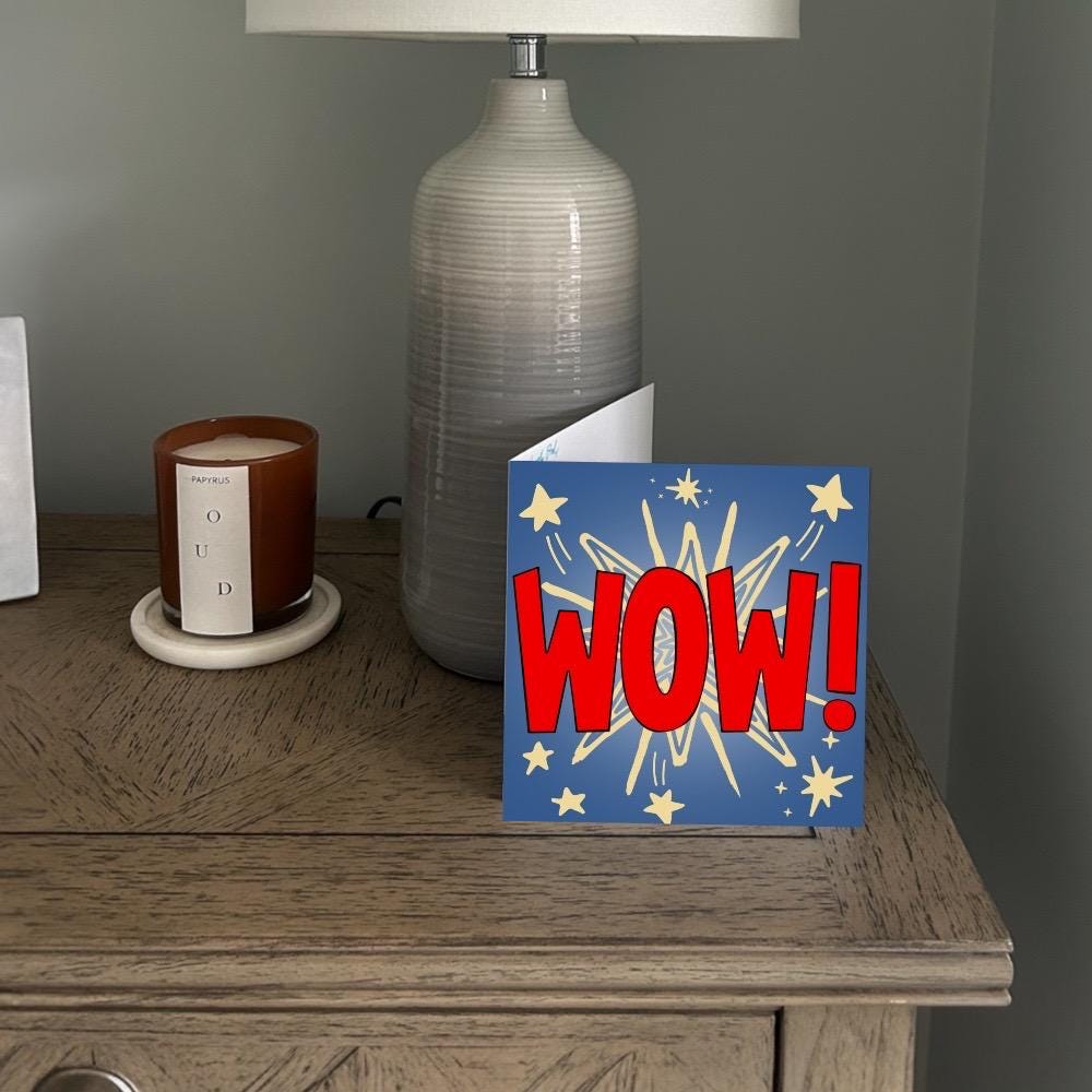 This colourful Congratulations card is perfect for celebrating someone's achievement - whether it is a new job, exam results, new home, or even an engagement! It is an original Blue Trousers design, which is printed in the UK on high quality, sustainably sourced 324gsm card. This congratulations card measures 5.5 by 5.5 inches (14cm by 14cm), is supplied with a brown recycled kraft paper envelope, and comes safely packaged in a biodegradable plastic wrapper. This card is blank on the inside, for you to write your own message.